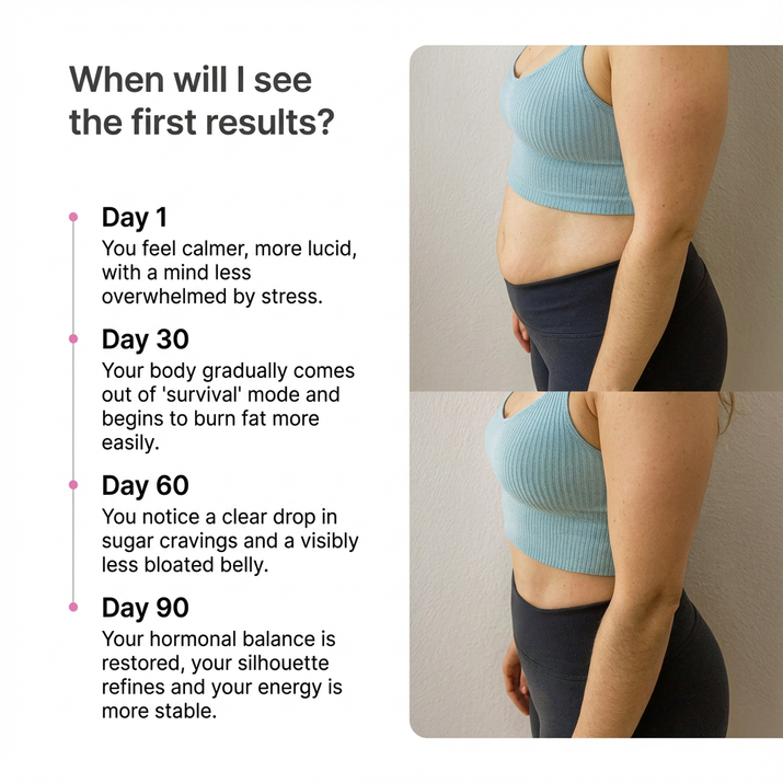 High cortisol from chronic stress puts your body in survival mode—storing belly fat, bloating your face, and blocking weight loss no matter how hard you diet. This formula lowers cortisol naturally so your body can finally burn fat again.
